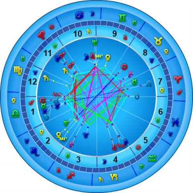 除了这些强相位以外,整个星盘还有特殊的大三角格局,三刑会冲格局,神秘矩形格局,风筝格局和上帝之指等等非凡的命盘格局。一般人哪怕有一个特殊格局都已经不容易,而命主却同时拥有众多的非凡格局,以下是一些具体解释。