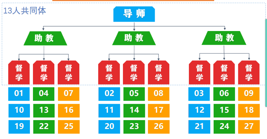 龙舰飞天的经济系统其实部分接近于一个分布式的学校,它的导师团队以及学生分布在各地,也有部分去中心化的特点。每个人也只能获得一个席位名额,在一轮的学习中,每个人将接受三个人的服务,分别是一个导师,一个助教和一个督学。这是一个分工明确的学习型小组。由13人的导师团队带领27个学生一起参与通识教育的学习并完成一些善理念的实践任务。